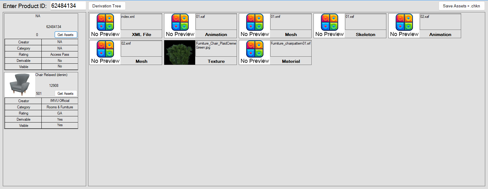 Product Extractor will extract (Meshes,Textures,Sekeleton,Animations,all product assets ) and will generate .CHKN file also.